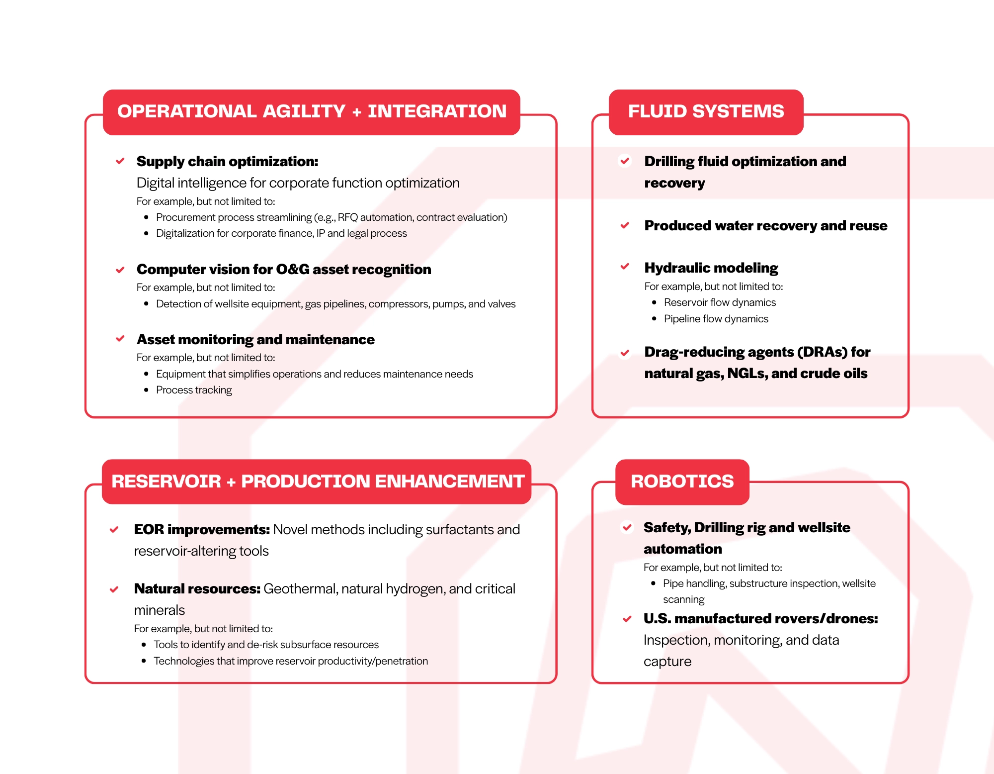 For the 2026 Spring Cohort, Rose Rock Bridge has identified the following focus areas alongside our energy corporate partners seeking emerging technology solutions to address the most critical innovation needs facing the industry.